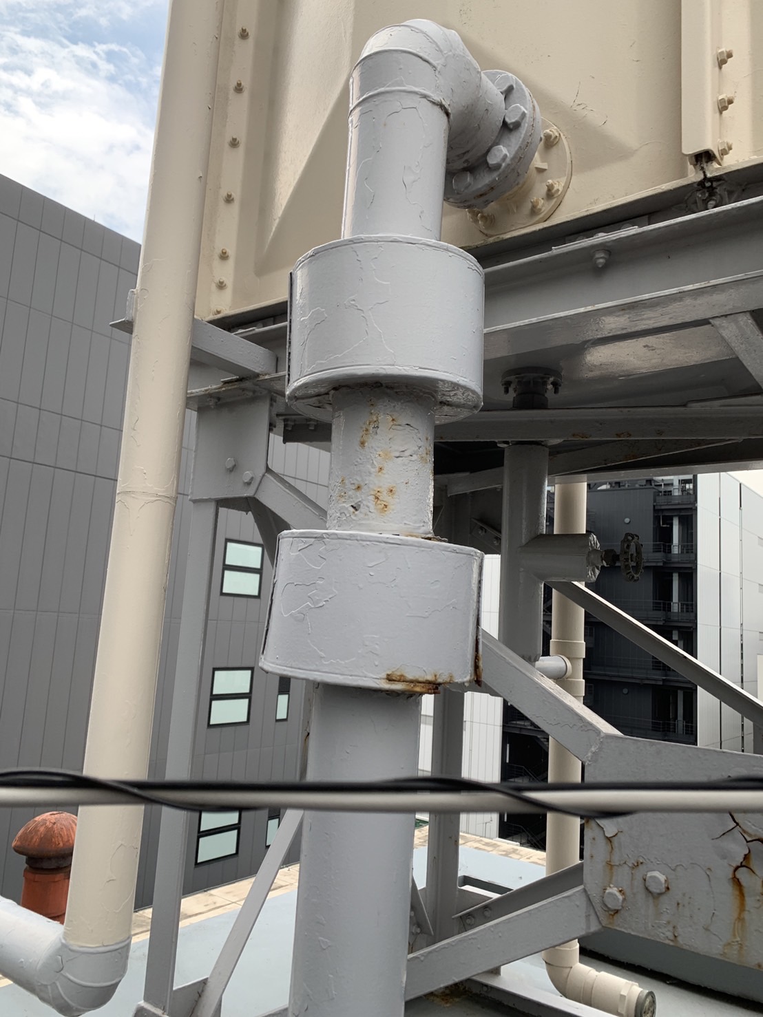 今回は、先日東京都千代田区のBビル屋上にて行なった給水配管更新工事の様子をご紹介いたします。